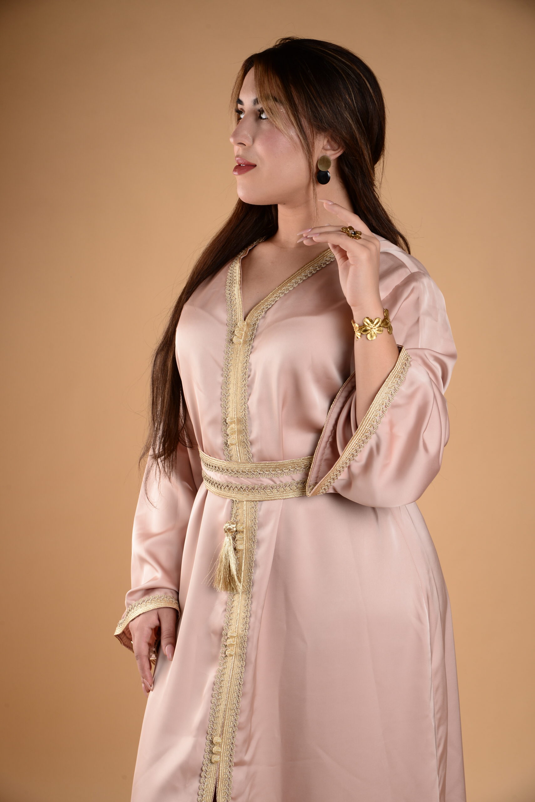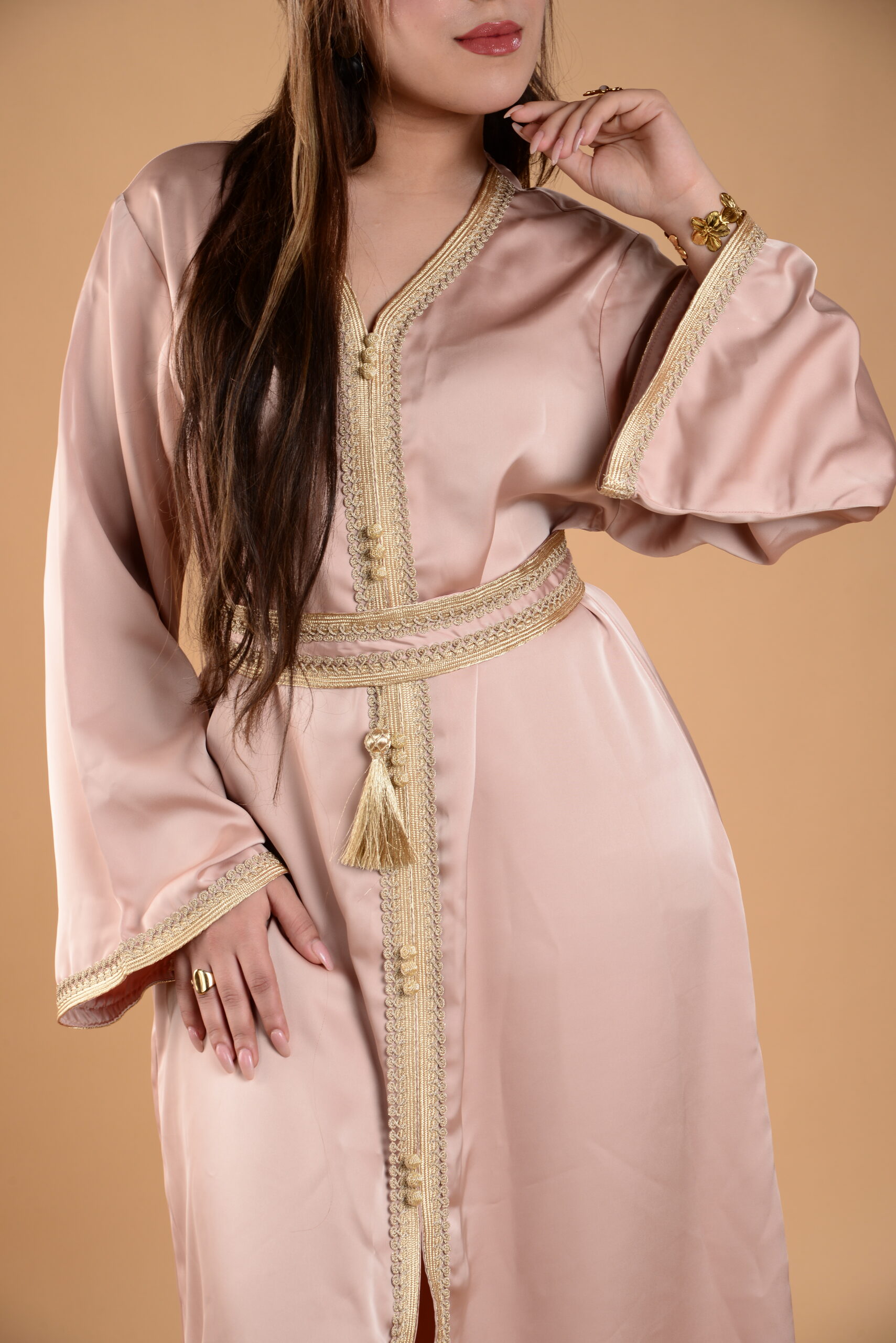 caftan rose pailleté